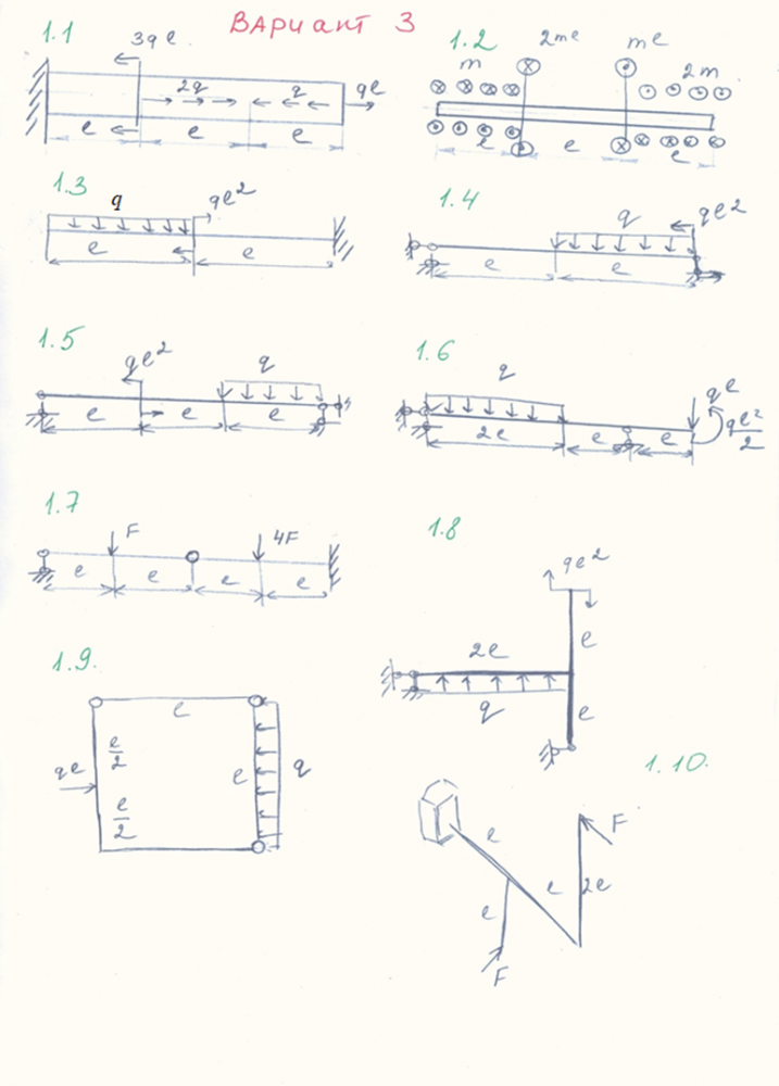 Решение ДЗ-1 "Анализ внутренних силовых факторов" (10 задач) 3 вариант (Зинченко Л.В.)