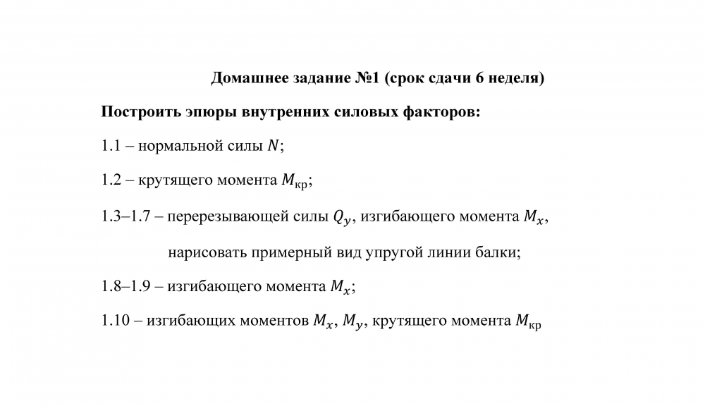 Домашнее задание №1 "Построение эпюр внутренних силовых факторов"