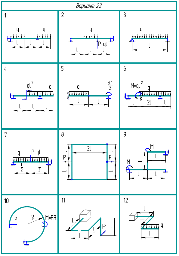 ДЗ 1: Построение эпюр внутренних силовых факторов вариант 22