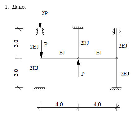 Для студентов по предмету Сопротивление материаловРасчет статически неопределимой рамы на устойчивость методом перемещенийРасчет статически неопределимой рамы на устойчивость методом перемещений