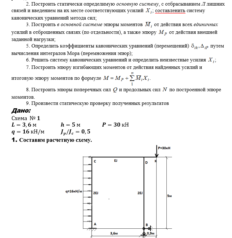 Для статически неопределимой рамы (рис. 2) требуется: