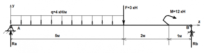 2. Построение эпюр поперечных сил “Q” и изгибающих моментов “М”.