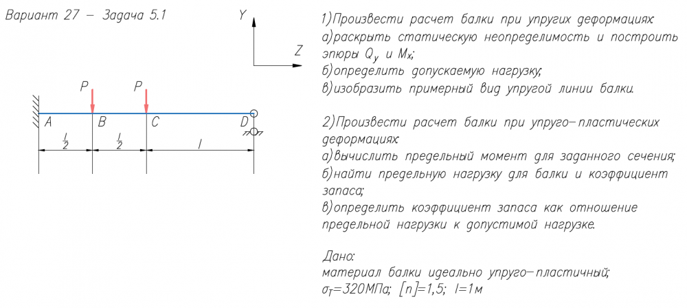 ДЗ 4: Статически неопределимые задачи изгиба вариант 27