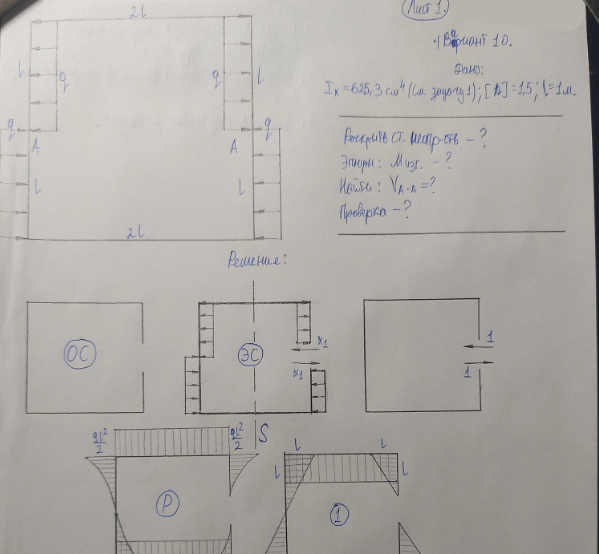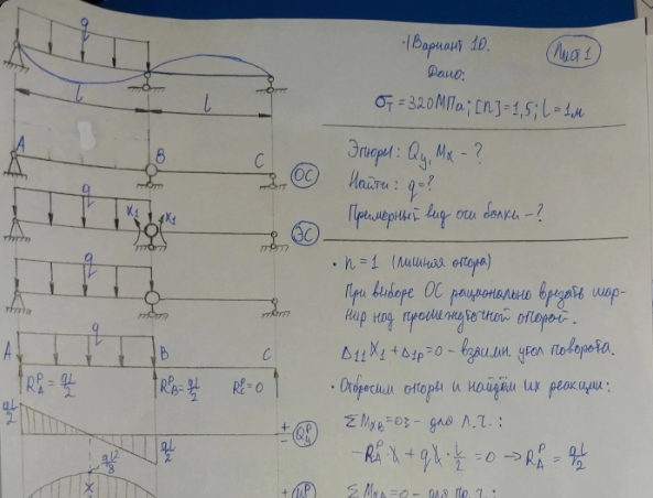 Вариант 10 - ДЗ №1 - Статически неопределимые задачи изгиба - Задача 1+задача 2
