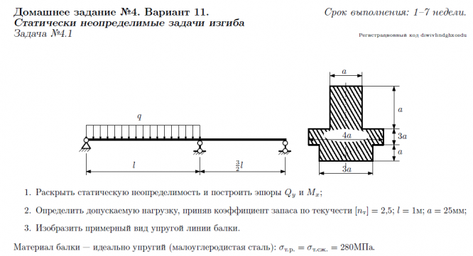 ДЗ 4: Статически неопределимые задачи изгиба вариант 11