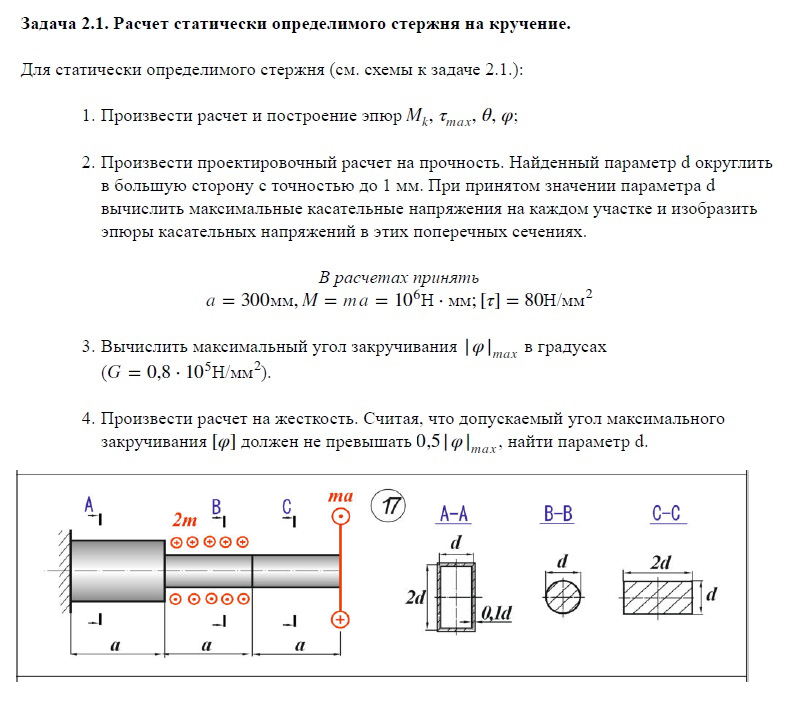 Задача 2.1. Расчет статически определимого стержня на кручение