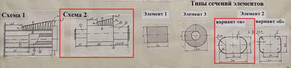 • Расчетная схема системы и тип сечения элемента 2 указываются преподавателем. Значение параметров m1, m2, α, β, γ берутся из таблицы в соответствие с номером варианта