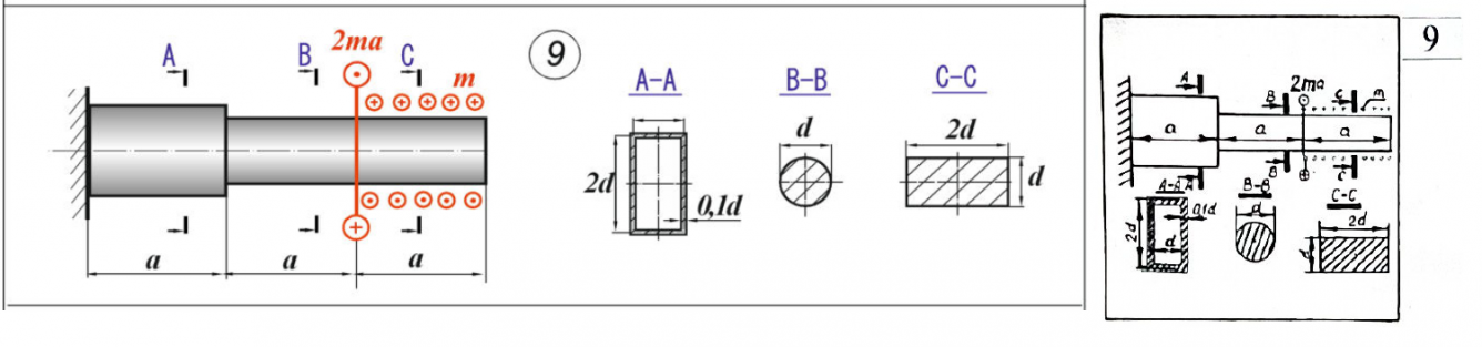 Главная » Учебные материалы » Сопротивление материалов » Домашние задания » МАИ » 1 семестр » Номер 2.1 » Вариант 9 » Расчет статически определимого стержня на кручение