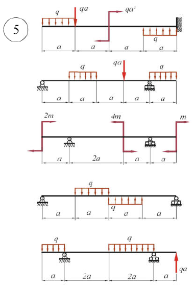 • Для балок из заданного комплекта схем построить эпюры Qy и Мz