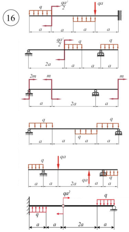 Главная » Учебные материалы » Сопротивление материалов » Домашние задания » МАИ » 1 семестр » Номер 3.1 » Вариант 16 » Построение эпюр внутренних силовых факторов при прямом поперечном изгибе