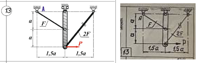 1. Произвести расчет статически стержневой системы от действия сил, вычислить усилия и напряжения в стержнях