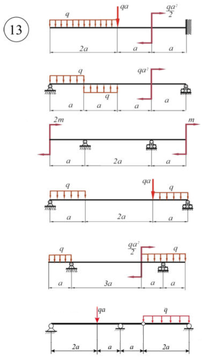 Главная » Учебные материалы » Сопротивление материалов » Домашние задания » МАИ » 1 семестр » Номер 3.1 » Вариант 13 » Построение эпюр внутренних силовых факторов при прямом поперечном изгибе