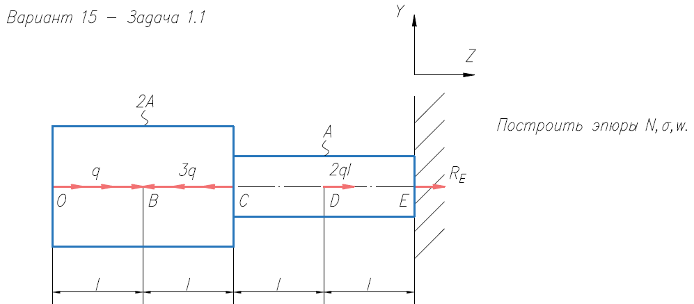 Построить эпюры N,σ,w; 1)Построить эпюры N,σ,w для стержня и трубки при нагревании трубки на ΔT. 2)Определить n/Т. 3)Найти потенциальную энергию системы. A=20мм2/; σ/тст=300МПа; σ/тм=150МПа; l=250мм; E/ст=2*105/МПа; E/ст=2E/м; ΔT=60°С α/м=16*10-6/1/град; 1)Определить нагрузку, при которой в стержневой системе возникают первые пластические деформации. 2)Найти напряжения, возникающие в стержнях при найденной нагрузке. l=0,4м; E=2*105/МПа; A=200мм2/; σ/Т=300МПа.