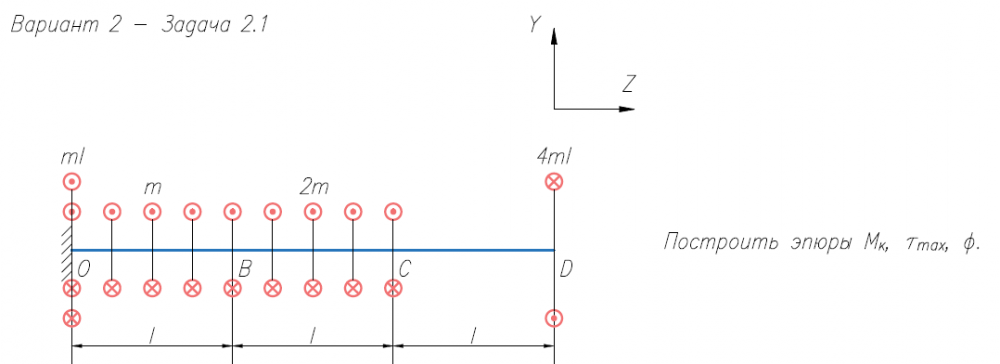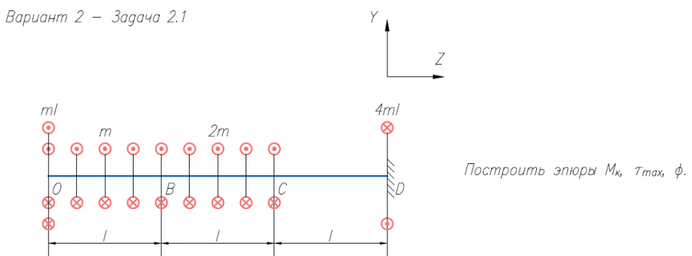 Построить эпюры М/к, τ/max, φ.;  1)Построить эпюры М/к, τ/max, φ 2)Из расчета на прочность найти размер d М=100Нм; τ/Т=80МПа; l=100мм; G=8*104/МПа.