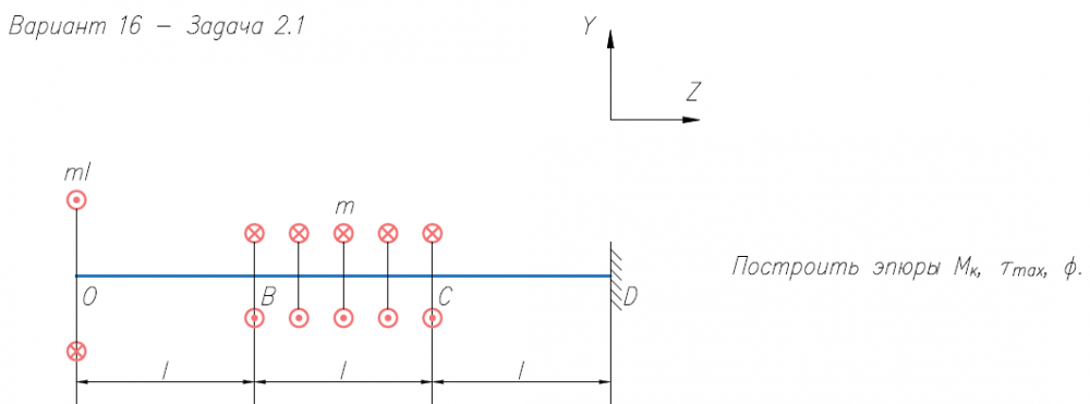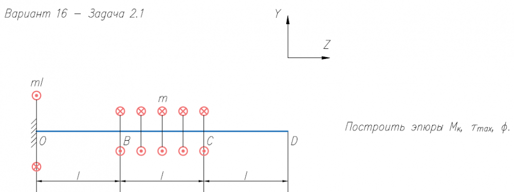 Построить эпюры М/к, τ/max, φ.;  1.Из расчета на прочность определить значение размера a 2.Построить эпюры М/к, τ/max, φ М=140Нм; τ/Т=240МПа; n/Т=1,8; l=100мм; G=8*104/МПа; d=a√2.