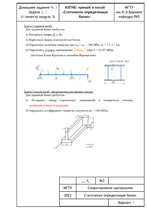 Для студентов МГТУ им. Н.Э.Баумана по предмету Сопротивление материаловСтатически определимые балкиСтатически определимые балки