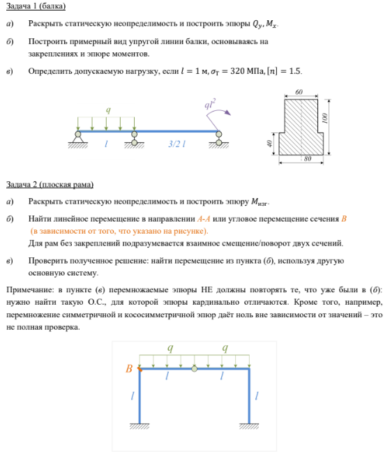 Для студентов МГТУ им. Н.Э.Баумана по предмету Сопротивление материаловСтатически неопределимый изгибСтатически неопределимый изгиб