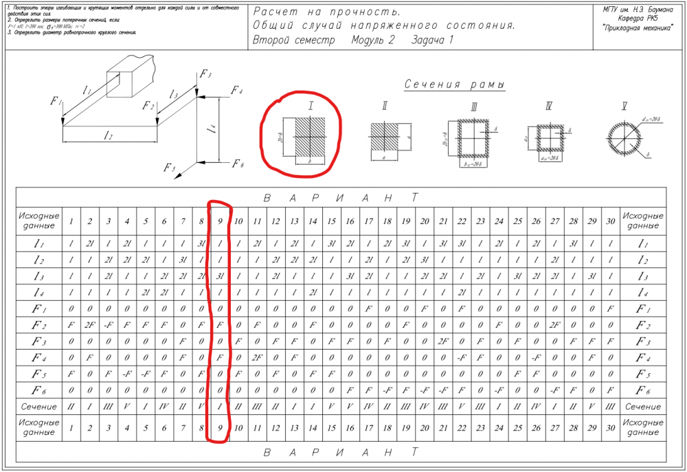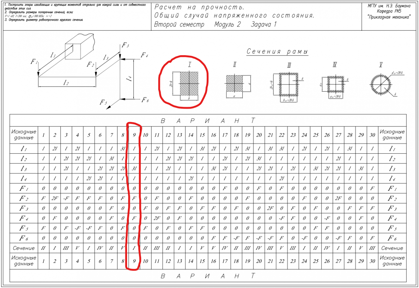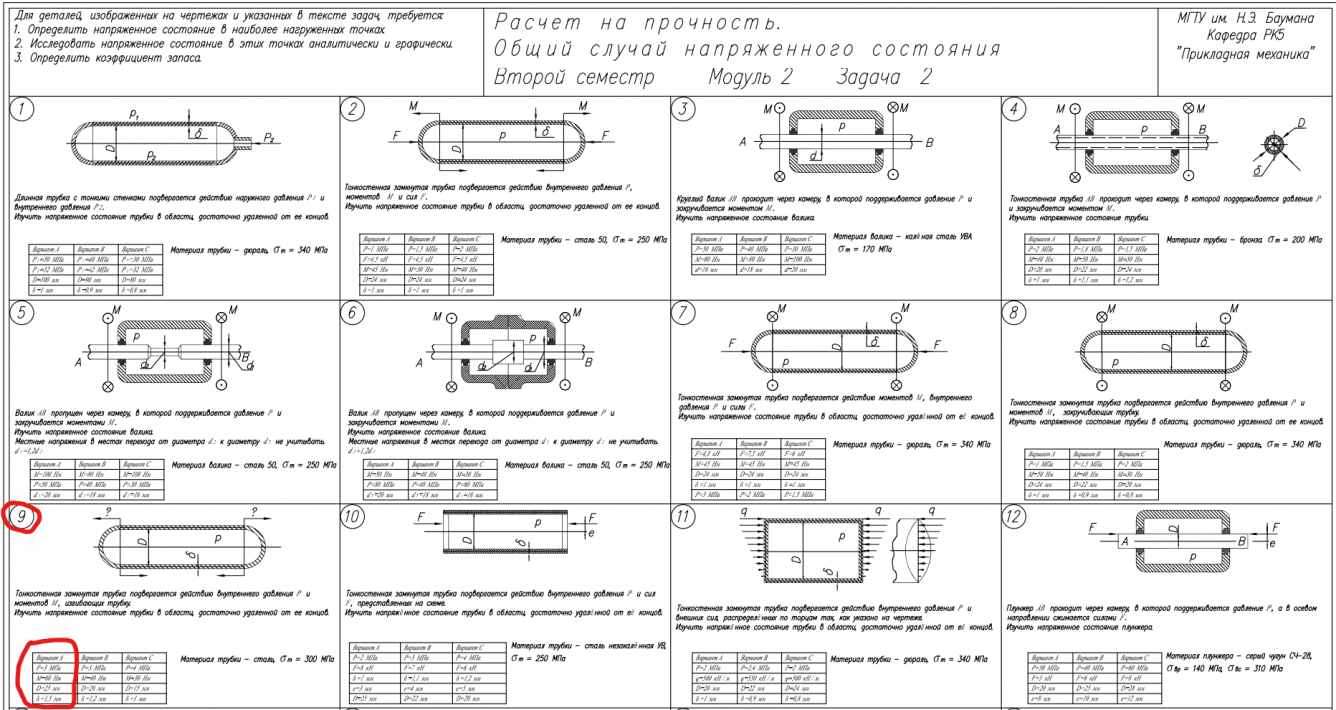 Главная » Учебные материалы » Сопротивление материалов » Домашние задания » МГТУ им. Н.Э.Баумана » 4 семестр » Номер 5 » Вариант 9 » Расчет на прочность. Общий случай напряженного состояния