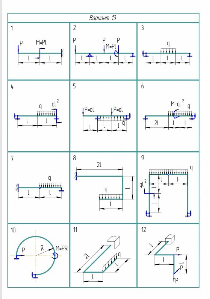 ДЗ 1: Построение эпюр внутренних силовых факторов вариант 13