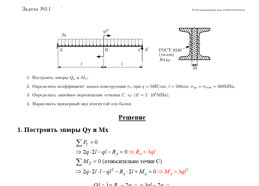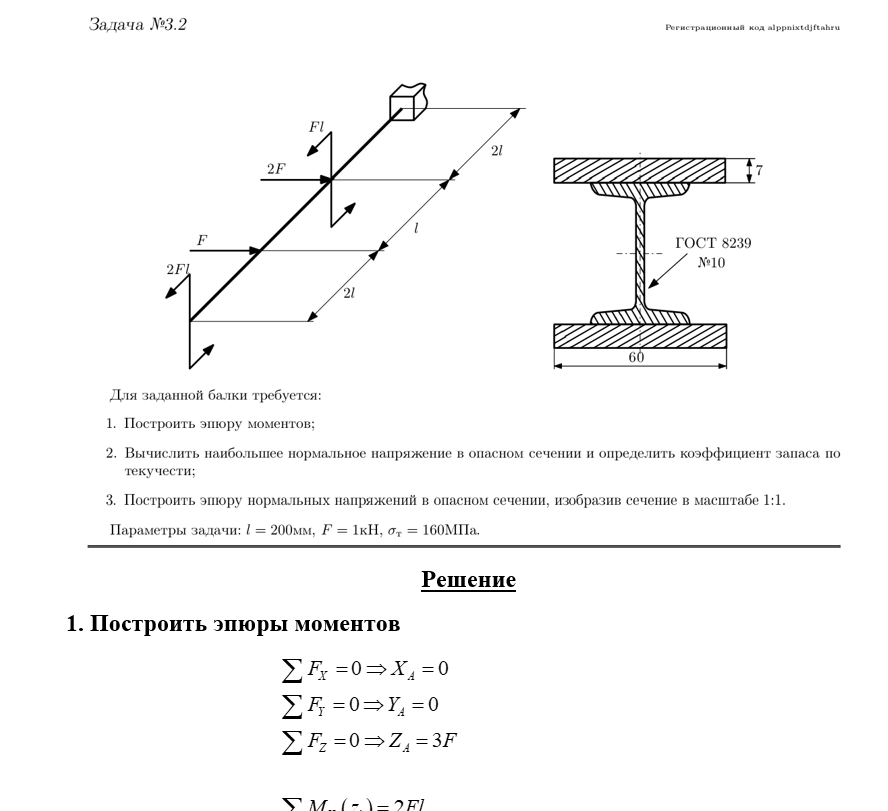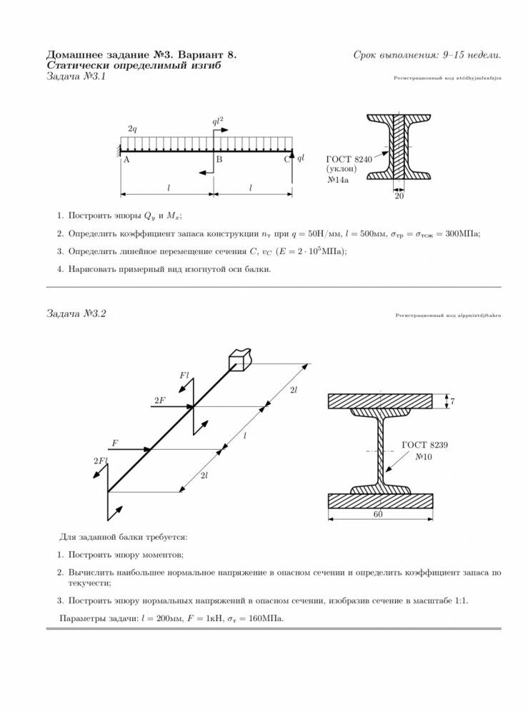 👉Задание № 3.2 - Статически определимый изгиб вариант 8