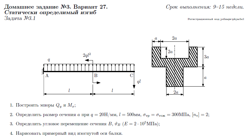 ДЗ 3: Статически определимый изгиб вариант 27