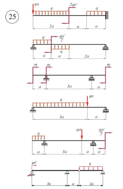 Главная » Учебные материалы » Сопротивление материалов » Домашние задания » МАИ » 1 семестр » Номер 3.1 » Вариант 25 » Построение эпюр внутренних силовых факторов при прямом поперечном изгибе