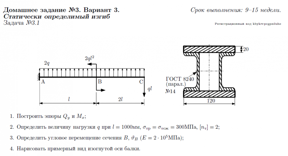 Для студентов МГТУ им. Н.Э.Баумана по предмету Сопротивление материаловСтатически определимый изгибСтатически определимый изгиб