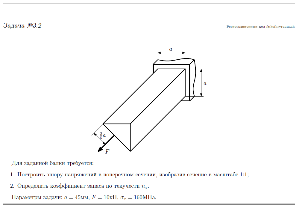 1. Построить эпюры Qy и Mx; 2. Определить коэффициент запаса конструкции nт при q = 20Н/мм, l = 1000мм, тр = тсж = 300МПа; 3. Определить линейное перемещение сечения C, vC (E = 2 · 105МПа); 4. Нарисовать примерный вид изогнутой оси балки. Для заданной балки требуется: 1. Построить эпюру напряжений в поперечном сечении, изобразив сечение в масштабе 1:1; 2. Определить коэффициент запаса по текучести nт. Параметры задачи: a = 15мм, F = 60кН, т = 160МПа..