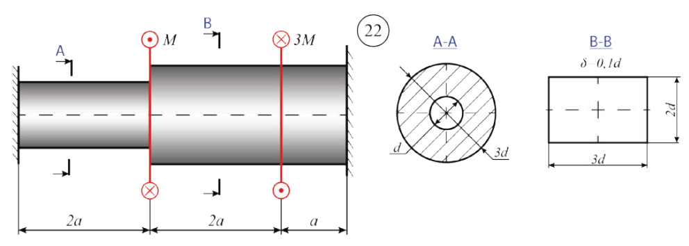 ДЗ 2.2: Расчет статически неопределимого стержня на кручение вариант 22