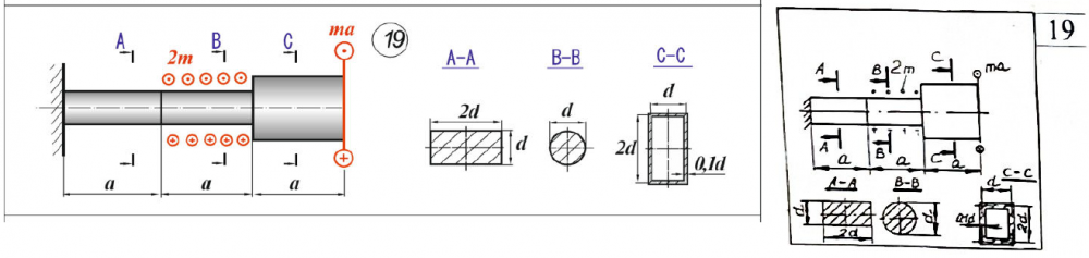 Главная » Учебные материалы » Сопротивление материалов » Домашние задания » МАИ » 1 семестр » Номер 2.1 » Вариант 19 » Расчет статически определимого стержня на кручение