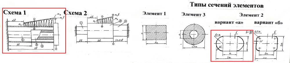 • Расчетная схема системы и тип сечения элемента 2 указываются преподавателем. Значение параметров m1, m2, α, β, γ берутся из таблицы в соответствие с номером варианта