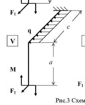 Ломаный брус (рис.3) с двумя взаимоперпендикулярными участками длиной a и с нагружен внешними силами, как показано на рисунке