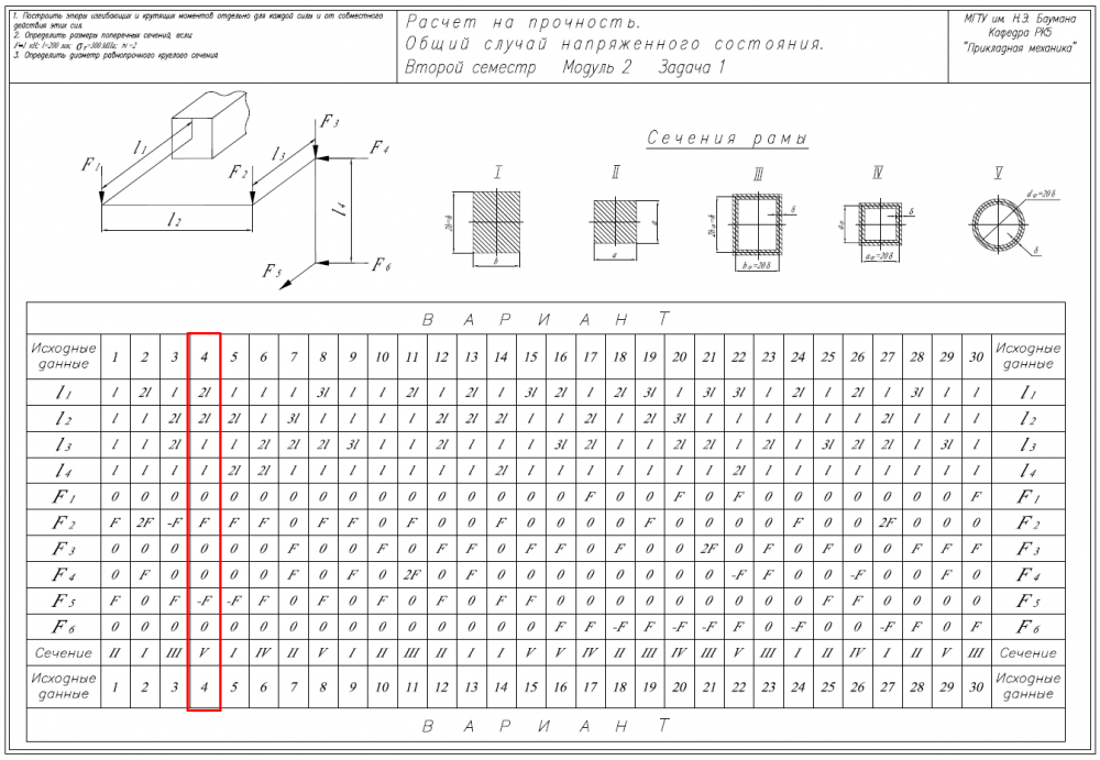 Главная » Учебные материалы » Сопротивление материалов » Домашние задания » МГТУ им. Н.Э.Баумана » 4 семестр » Номер 6C » Вариант 4 » Расчет на прочность. Общий случай напряженного состояния