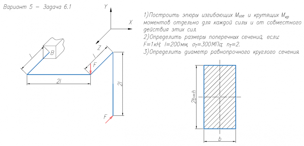 Главная » Учебные материалы » Сопротивление материалов » Домашние задания » МГТУ им. Н.Э.Баумана » 4 семестр » Номер 6A » Вариант 5 » Расчет на прочность. Общий случай напряженного состояния