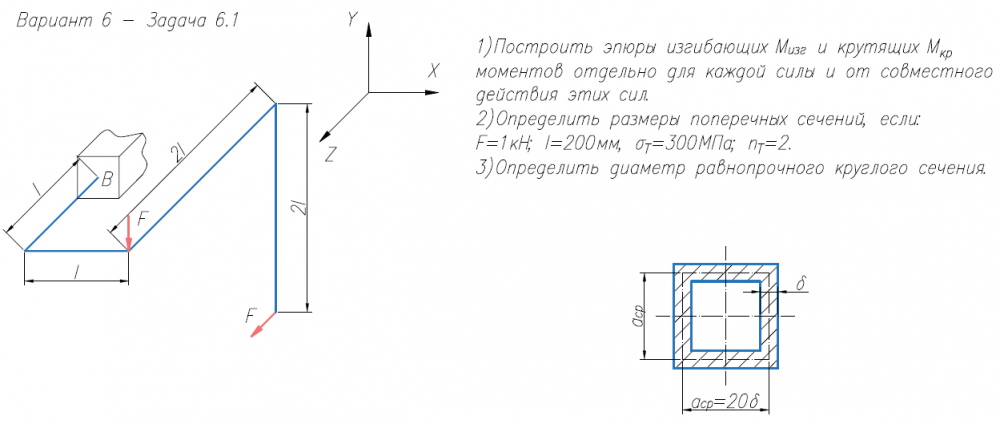 Главная » Учебные материалы » Сопротивление материалов » Домашние задания » МГТУ им. Н.Э.Баумана » 4 семестр » Номер 6B » Вариант 6 » Расчет на прочность. Общий случай напряженного состояния