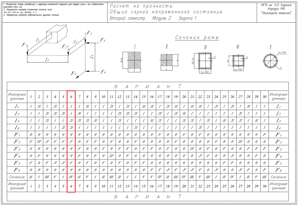 Главная » Учебные материалы » Сопротивление материалов » Домашние задания » МГТУ им. Н.Э.Баумана » 4 семестр » Номер 6C » Вариант 6 » Расчет на прочность. Общий случай напряженного состояния