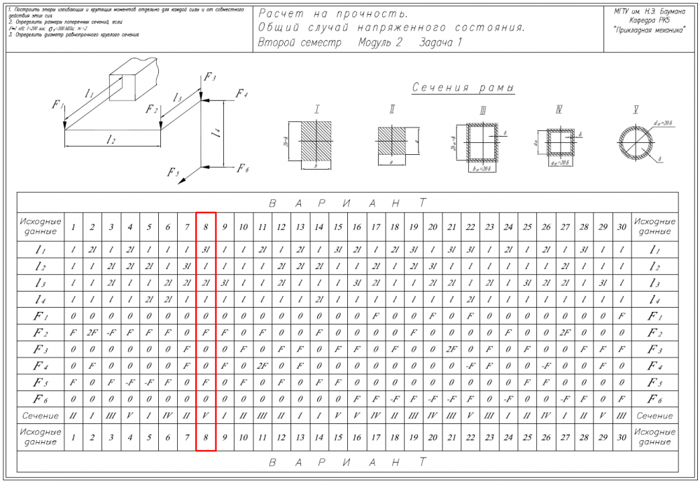 Главная » Учебные материалы » Сопротивление материалов » Домашние задания » МГТУ им. Н.Э.Баумана » 4 семестр » Номер 6A » Вариант 8 » Расчет на прочность. Общий случай напряженного состояния