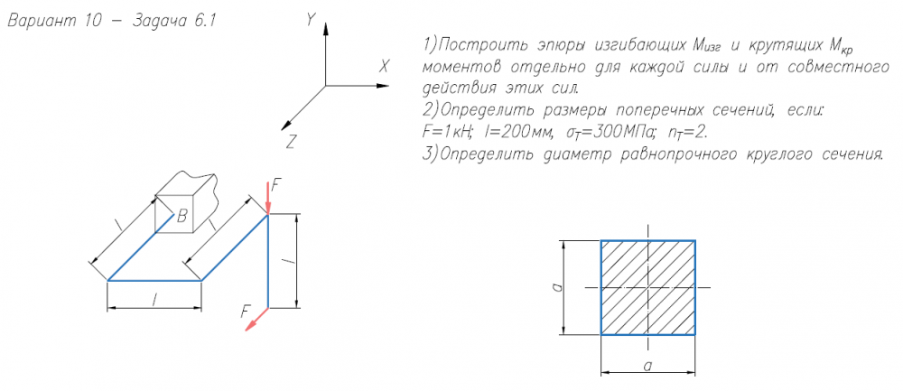 ДЗ 6A: Расчет на прочность. Общий случай напряженного состояния вариант 10