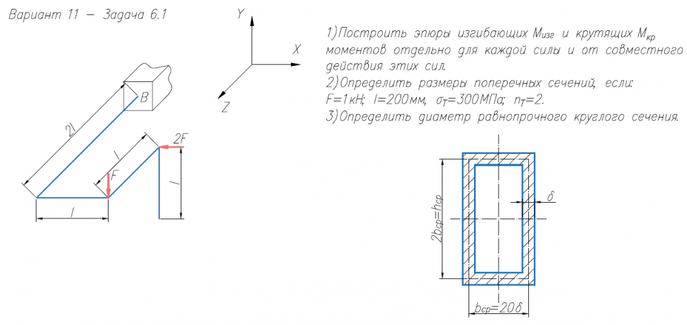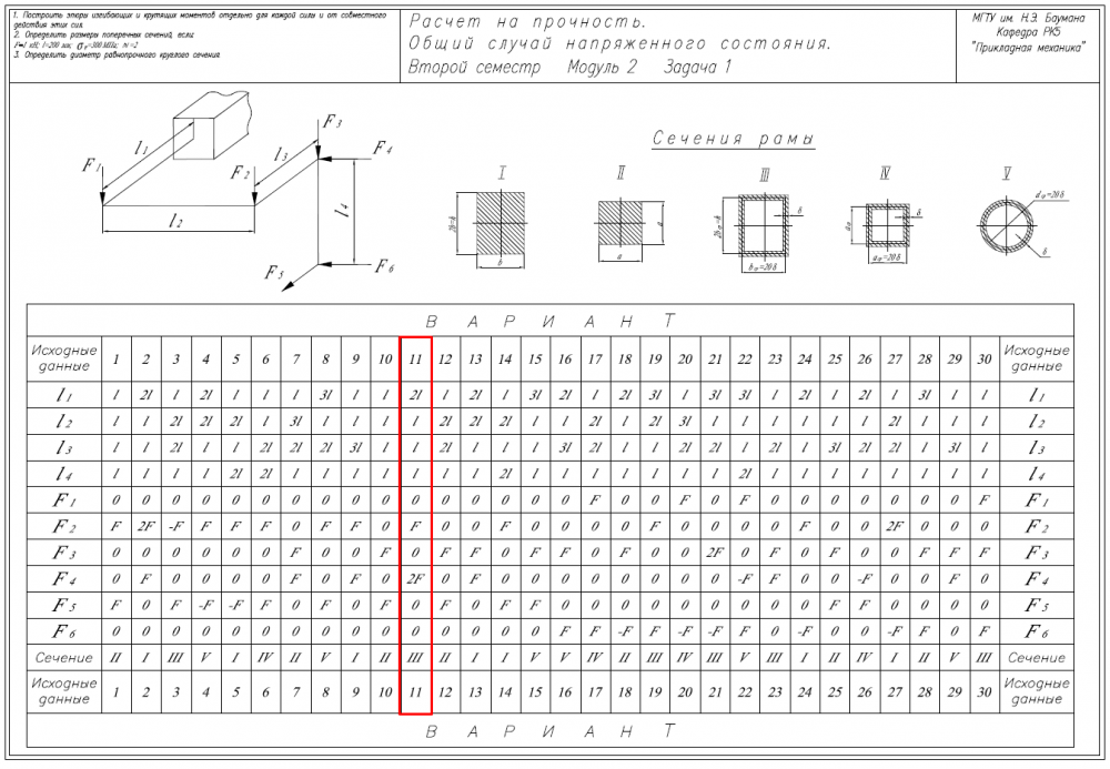 ДЗ 6B: Расчет на прочность. Общий случай напряженного состояния вариант 11