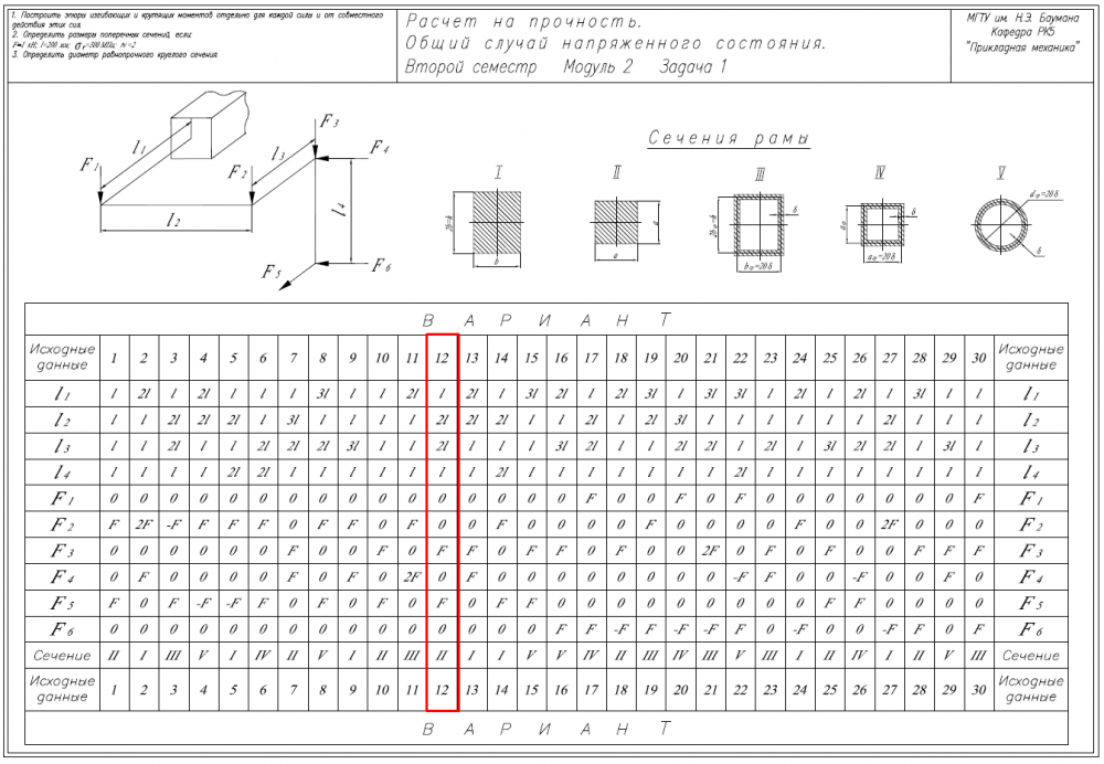 ДЗ 6C: Расчет на прочность. Общий случай напряженного состояния вариант 12