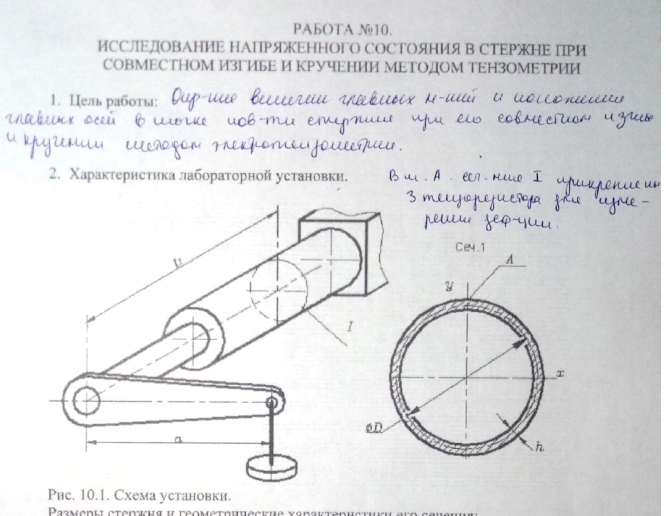 Лабораторная работа 10: Исследование напряженного состояния в стержне при совместном изгибе и кручении методом тензометрии