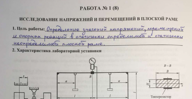 Лабораторная работа №8 - "Исследование напряжений и перемещений в плоской раме", зачтено.