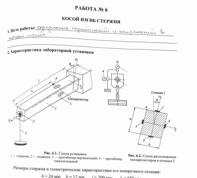 Лабораторная работа №6 "Косой изгиб стержня", зачтено