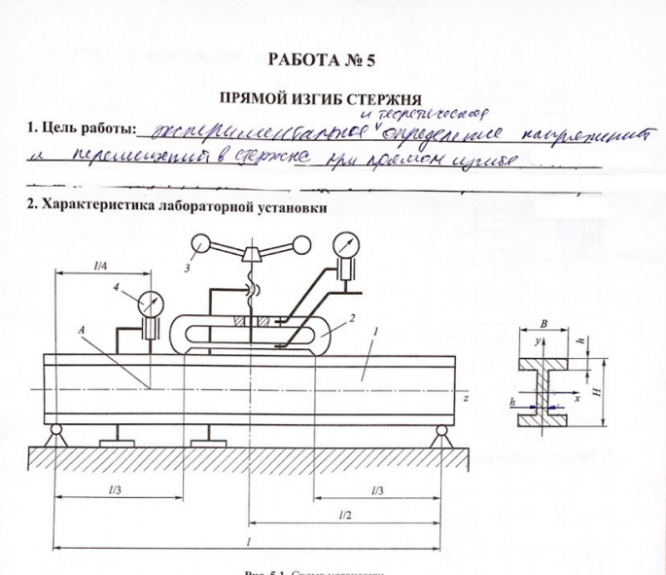 Лабораторная работы 5 "Прямой изгиб стержня", зачтено.