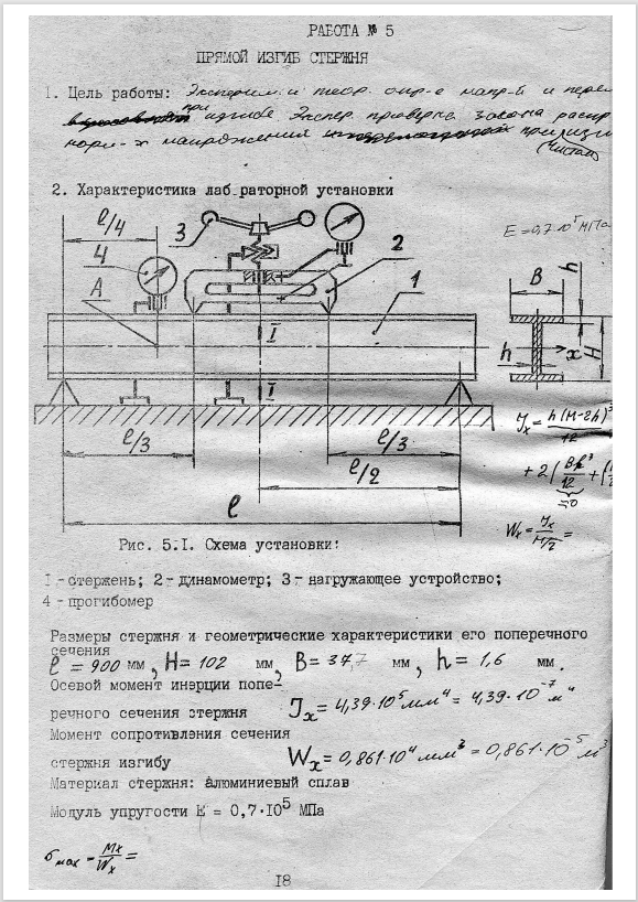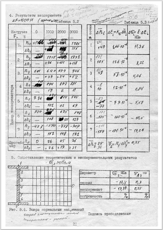 По высоте балки наклеены 7 тензорезисторов, которые измеряют продольную деформацию. Деформация умножается на модуль упругости E - получаем эпюру нормальных напряжений по высоте поперечного сечения.