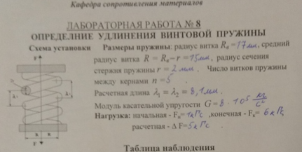 Для студентов СПбПУ Петра Великого по предмету Сопротивление материаловОпределение удлинения винтовой пружиныОпределение удлинения винтовой пружины