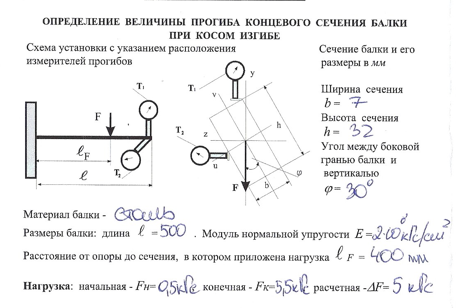 Лабораторная работа 15: Определение величины прогиба концевого сечения балки при косом изгибе