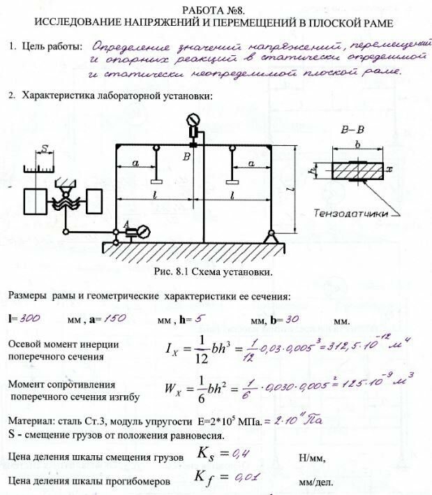 Для студентов МГТУ им. Н.Э.Баумана по предмету Сопротивление материаловИсследование напряжений и перемещений в плоской рамеИсследование напряжений и перемещений в плоской раме
