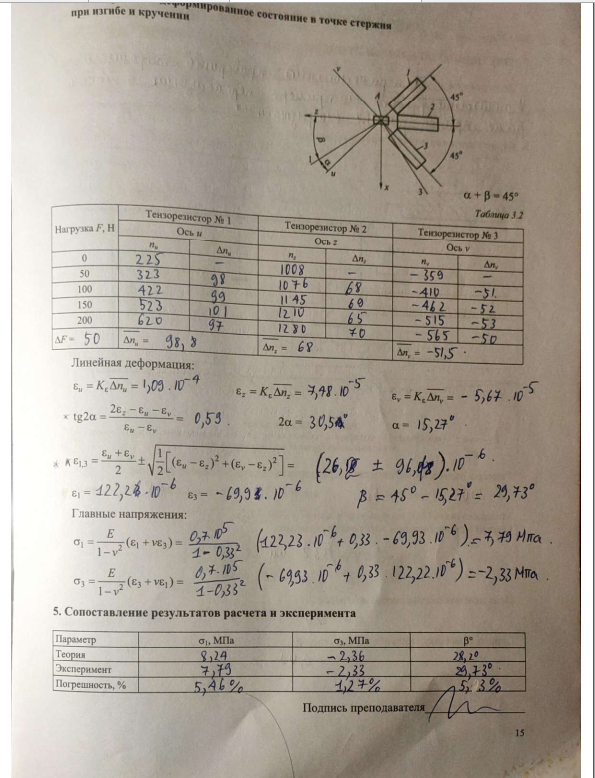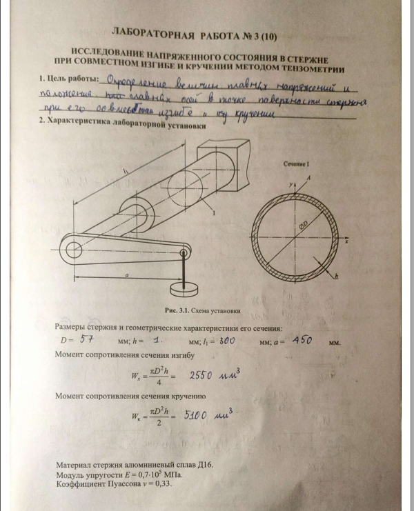 Лабораторная работа 10: Ислледование напряженного состояния в стержне при совместном изгибе и кручении методом тензометрии