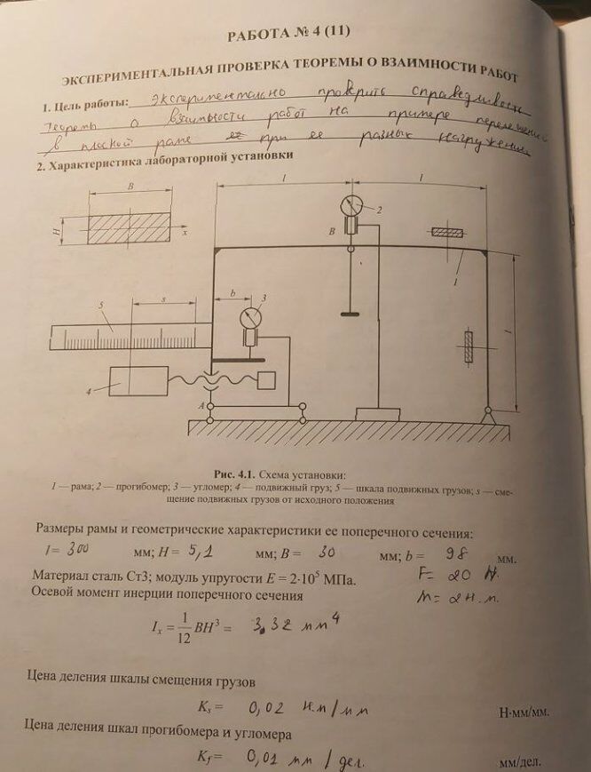 Для студентов МГТУ им. Н.Э.Баумана по предмету Сопротивление материаловЭкспериментальная проверка теоремы о взаимности работЭкспериментальная проверка теоремы о взаимности работ